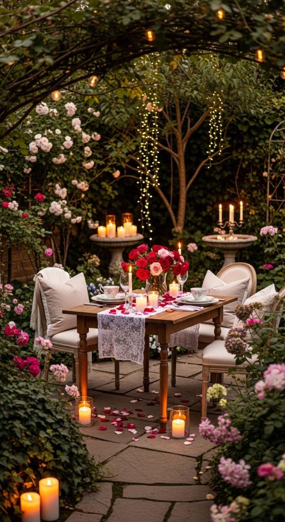 This garden is perfect for cozy evenings and aesthetic roleplay scenes. It focuses on romance, lighting, and soft decor.