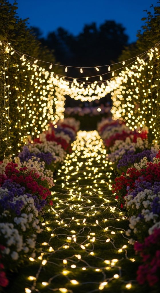This garden is magical, dreamy, and perfect for night builds. It uses glowing lights and soft decor to create a fantasy vibe.
