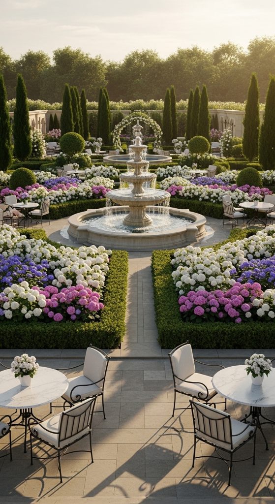 A villa garden is big, elegant, and very detailed. It’s one of the most high-end Bloxburg Garden Ideas.