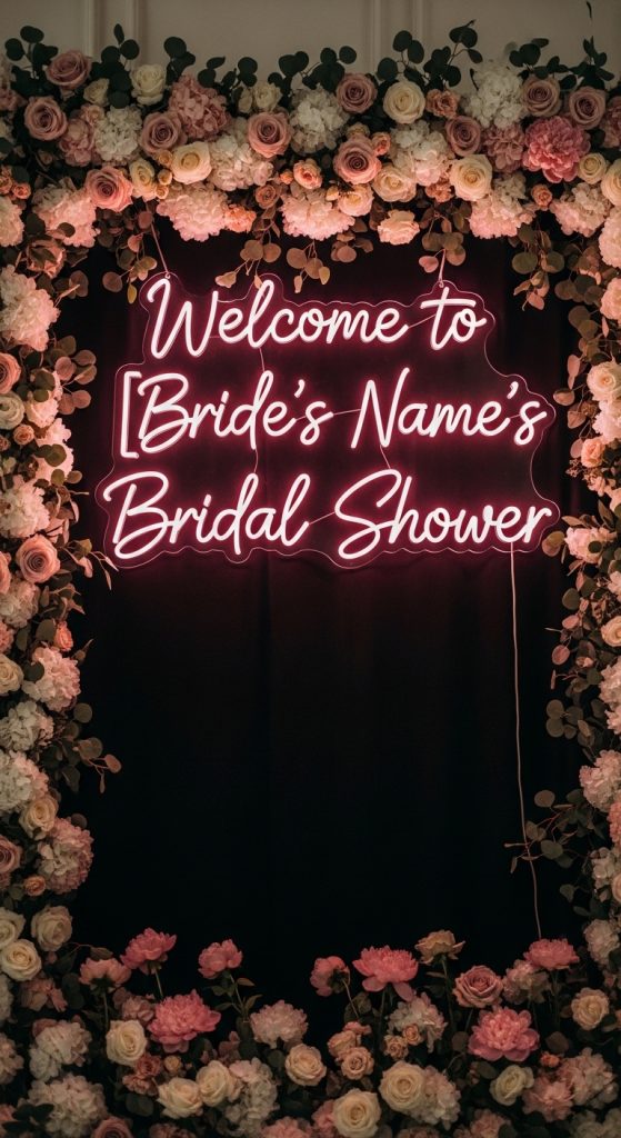 A neon sign is bold, modern, and unforgettable. It works especially well for evening bridal showers.