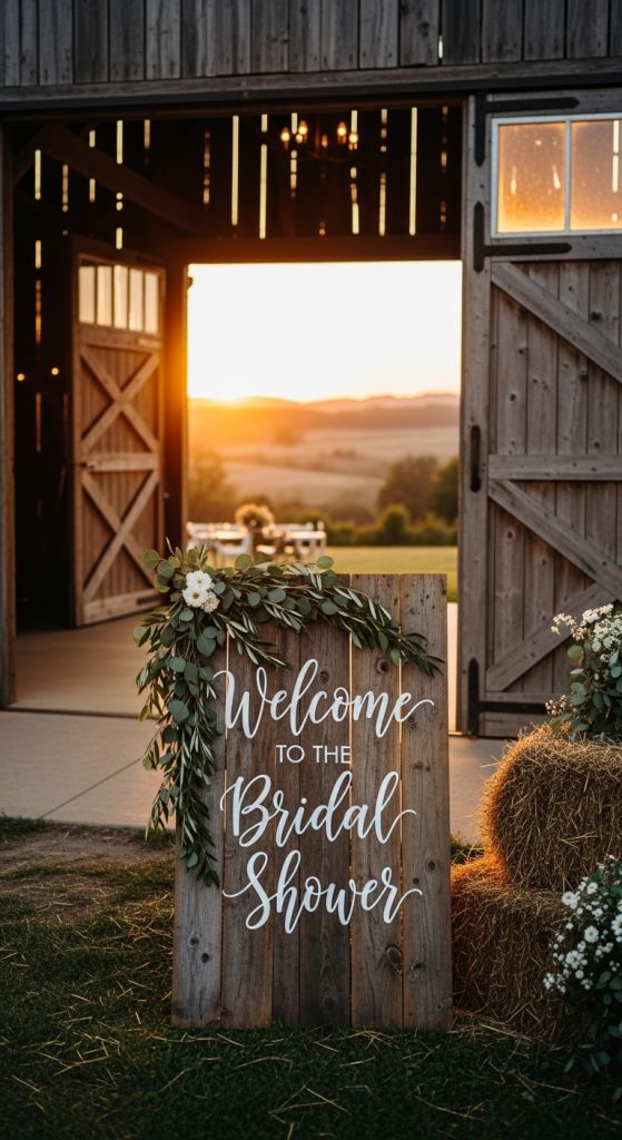 A rustic wooden sign gives a warm and cozy vibe. It is perfect for barn weddings or outdoor bridal showers. The natural wood texture adds charm and makes the entrance feel inviting and personal.