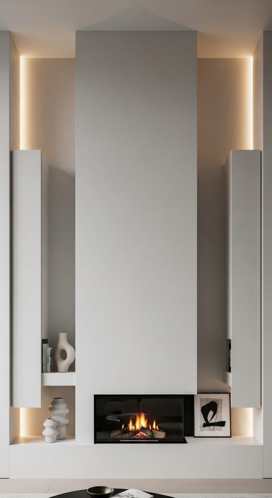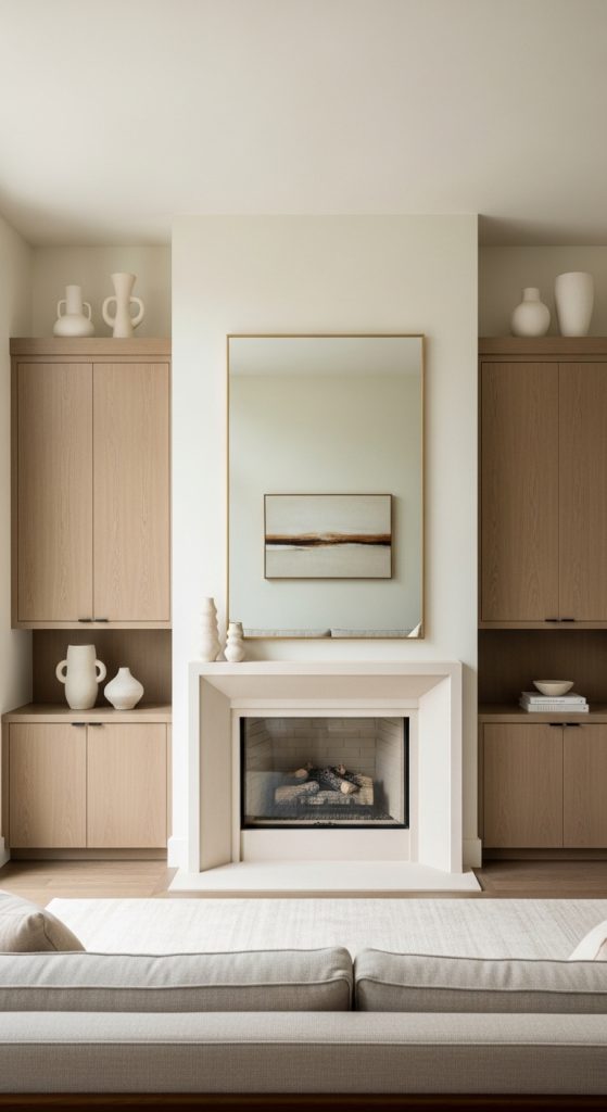Hidden cabinets keep everything neat and invisible. This final idea in 10 Cabinets Beside Fireplace Ideas is perfect for a clean modern look.