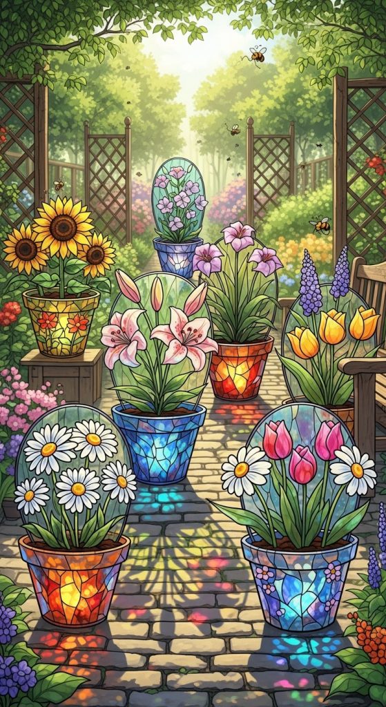 7. Stained Glass Flower Pots