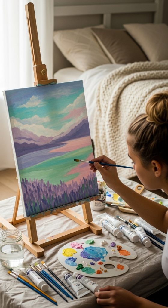 Canvas painting is one of the most relaxing and fun art activities for teens. You can paint anything—from sunsets to abstract designs. There are no rules, just creativity!