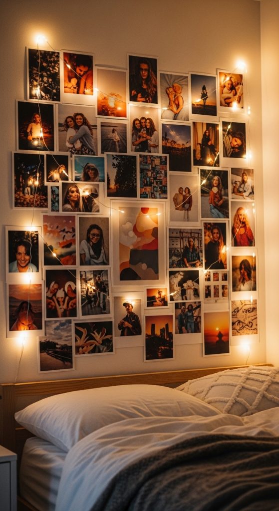 - Arrange photos on wall
