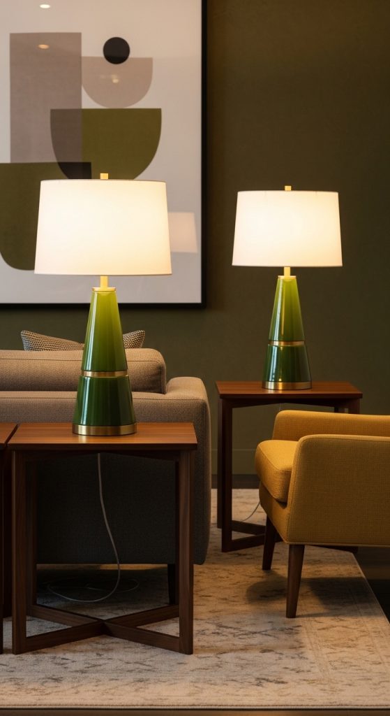 Incorporate green through lighting fixtures or lampshades. This adds subtle color and softens the room’s ambiance.