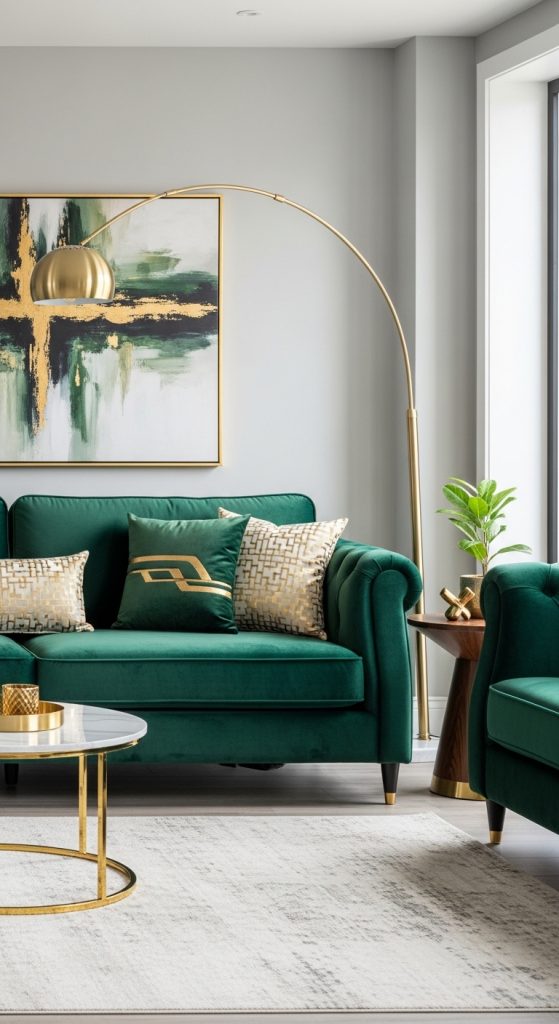 2. Green Velvet Sofa