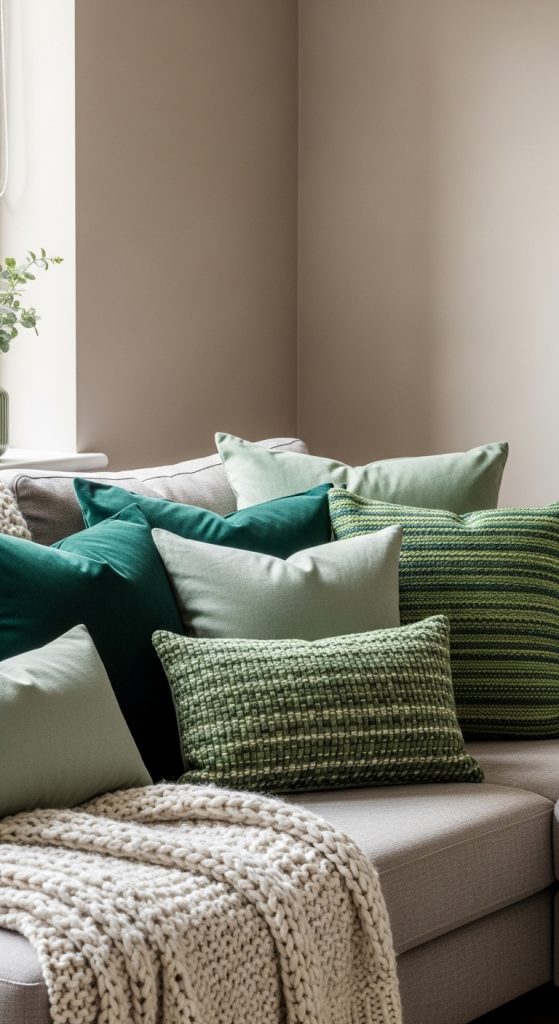 Why it works: Small accents like cushions are cost-effective and versatile for experimenting with green tones.
