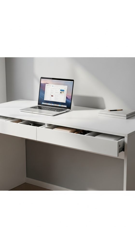 SEO & Pinterest Keywords: desk with drawers setup, clean laptop desk, minimal storage ideas, organized workspace inspiration