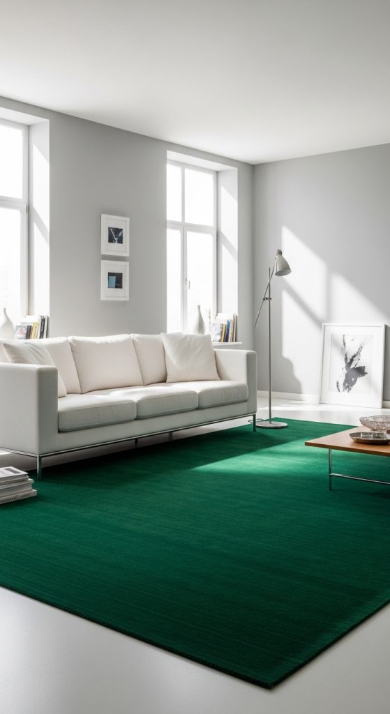 For a vibrant statement, bold-colored rugs make your living room pop. Deep greens, blues, or reds instantly energize the space.