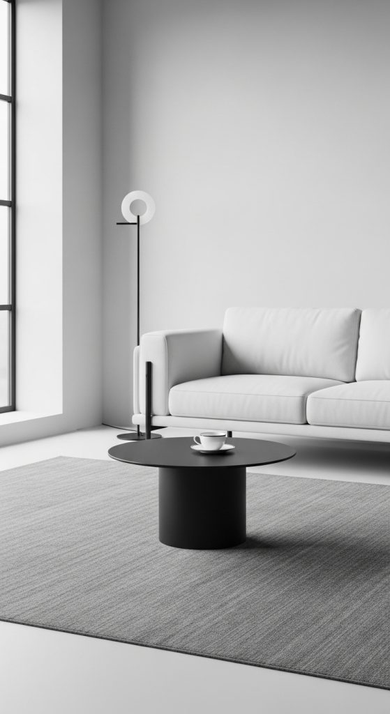 Why it works: Monochrome rugs are timeless and versatile, fitting into nearly any modern living room.
