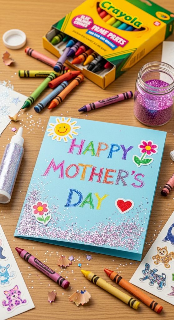 A handmade card is simple but always special. Kids can decorate it with drawings, stickers, and messages.