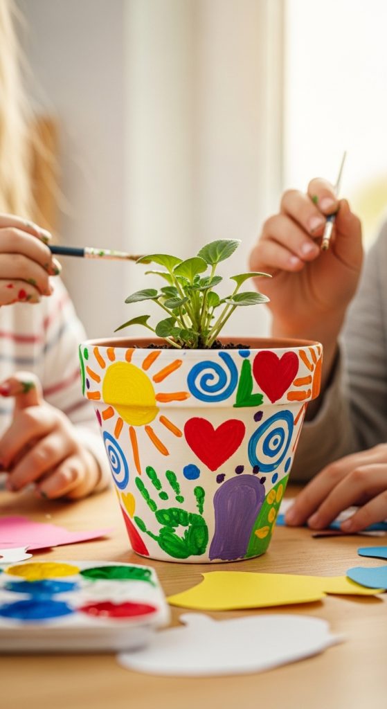 Kids can decorate a simple pot and turn it into a beautiful gift.