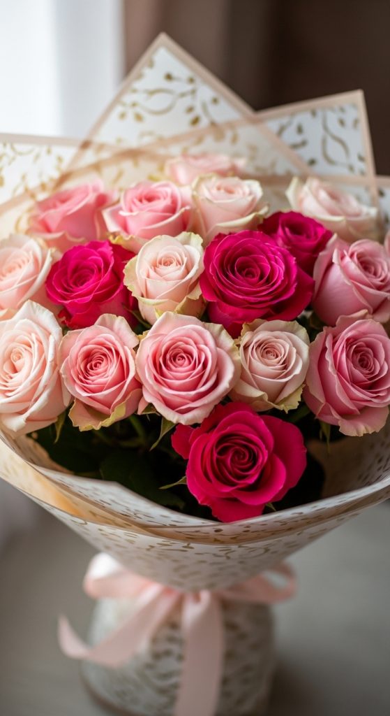 Pro Tip: Mix light and dark pink roses for a richer, more dimensional bouquet.