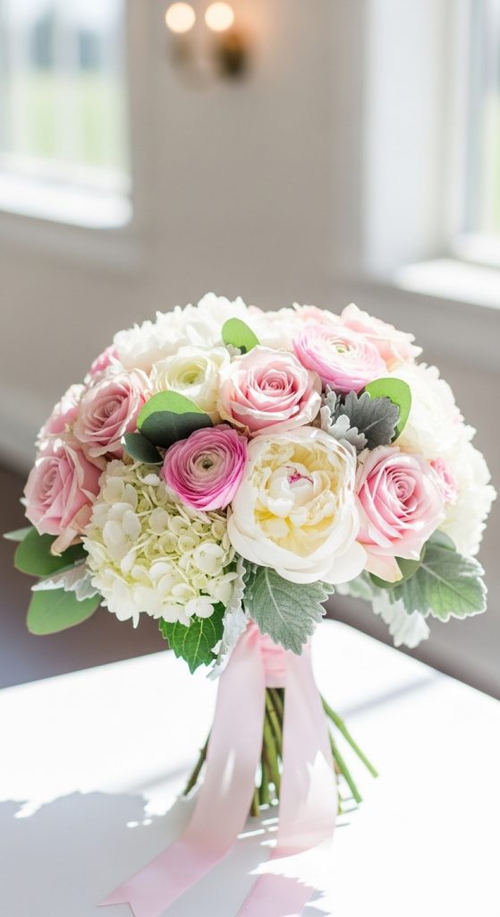 A pink and white bouquet feels clean, peaceful, and elegant. The white flowers balance the pink tones, making it perfect for weddings, formal events, or minimalist aesthetics.