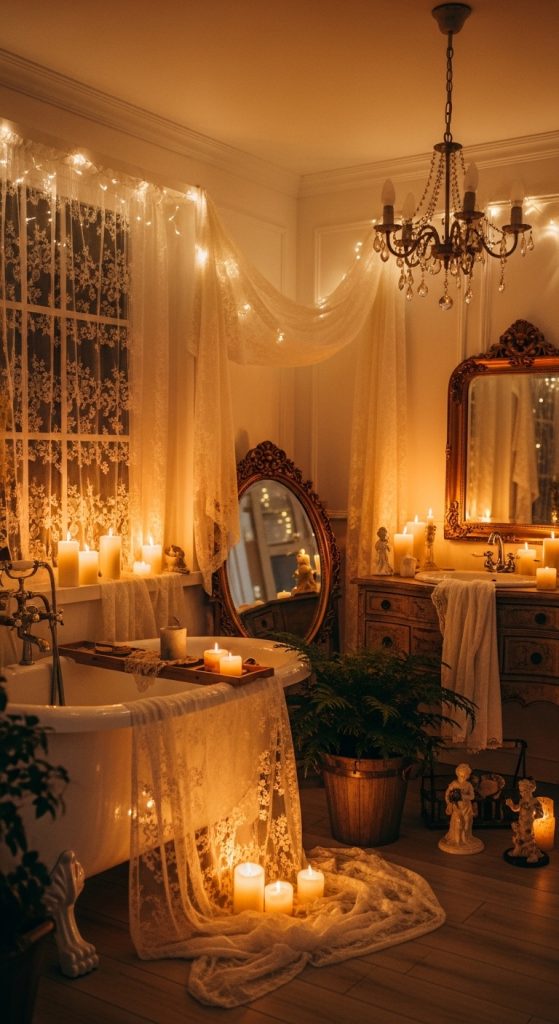 Lighting plays a huge role in 10 Shabby Chic Bathroom Decor Ideas. Soft, warm lighting creates a cozy and relaxing atmosphere. Avoid harsh white lights and choose warm yellow tones instead.