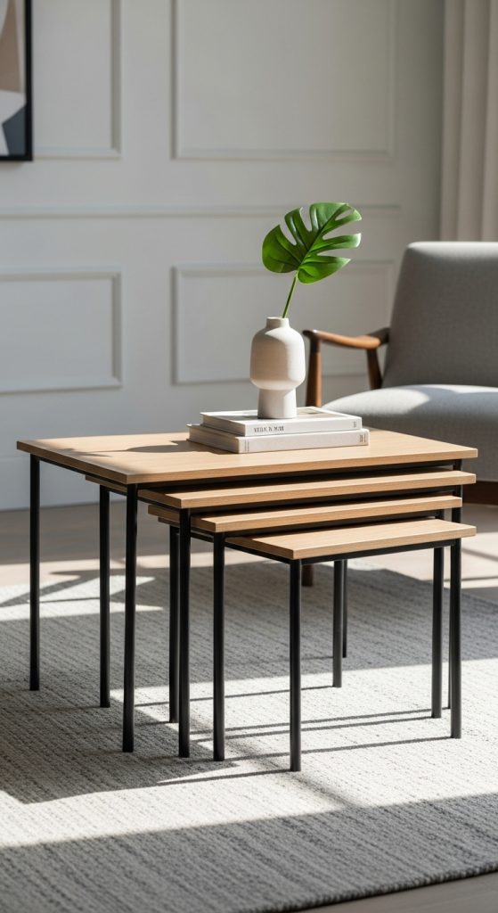 Nesting tables fit inside each other, saving space when not in use.