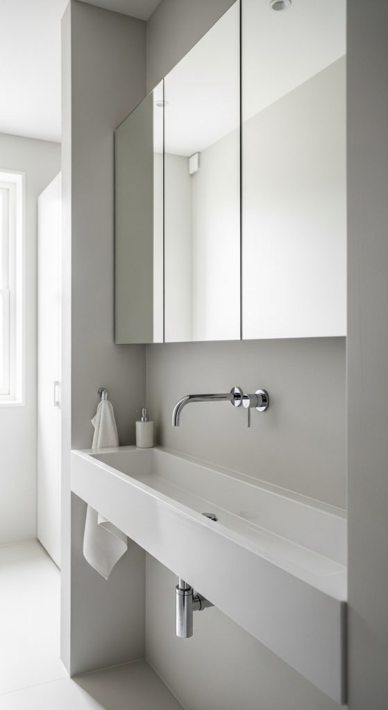 This idea is perfect for tight spaces. A slim trough sink is one of the most practical 10 Trough Bathroom Sink Ideas for apartments or small homes.