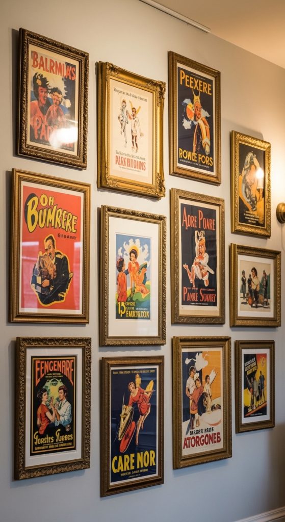 Old-school posters or framed artwork add personality and nostalgia to any room.