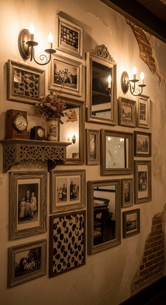 1. Hang vintage or distressed frames on one wall.