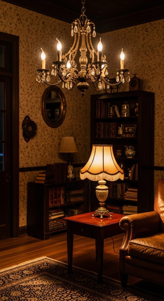 SEO & Pinterest Keywords: vintage lighting ideas, antique lamp decor, cozy room aesthetic, retro room lighting