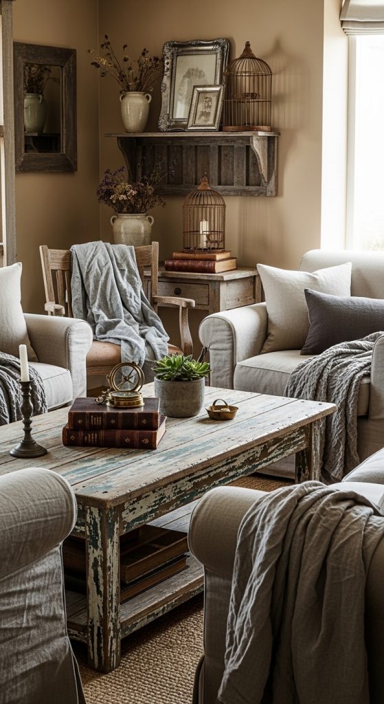 SEO & Pinterest Keywords: rustic vintage decor, wooden room aesthetic, distressed furniture ideas, cozy vintage room
