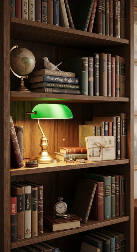 SEO & Pinterest Keywords: vintage bookshelf aesthetic, retro book decor, classic home library, antique shelf styling