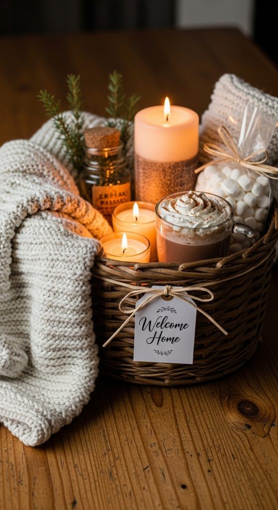 From cozy comfort baskets to snack boxes, spa treats, and personalized gifts, each idea is designed to make someone smile the moment they walk in. Let’s explore these heartfelt basket ideas that turn a simple welcome into a beautiful memory.