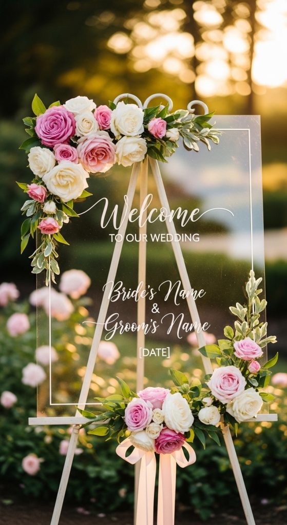 1. Elegant Floral Acrylic Wedding Welcome Sign
