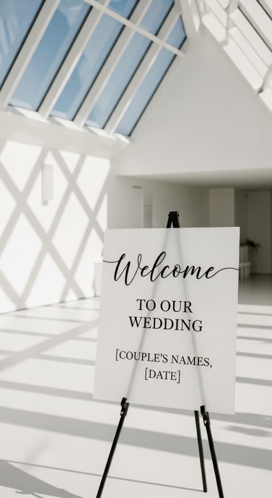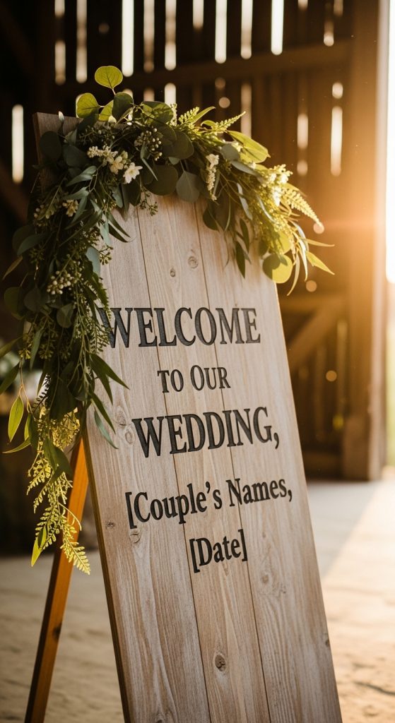 A well-designed welcome sign instantly upgrades your wedding entrance.