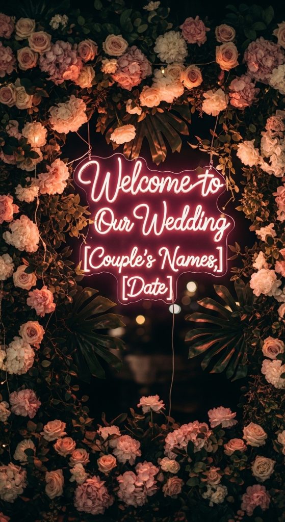 Neon signs are bold, modern, and perfect for evening weddings. They create a glowing, romantic atmosphere.